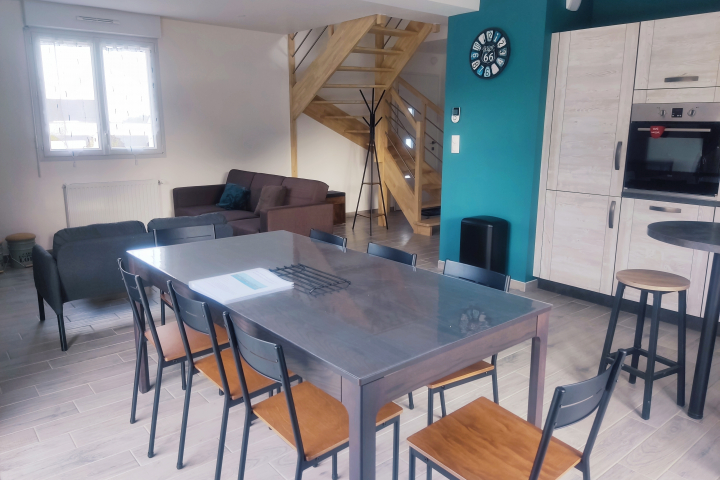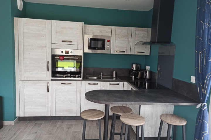 Cuisine ouverte moderne (lave-vaisselle, four, micro-ondes, plaque induction, cafetière, appareil à raclette…)